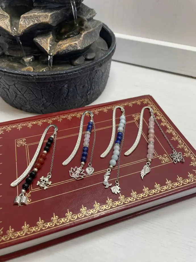 De charmants marques-pages ornés de pierres et symboles, parfaits pour un cadeau original et plein de sens ✨