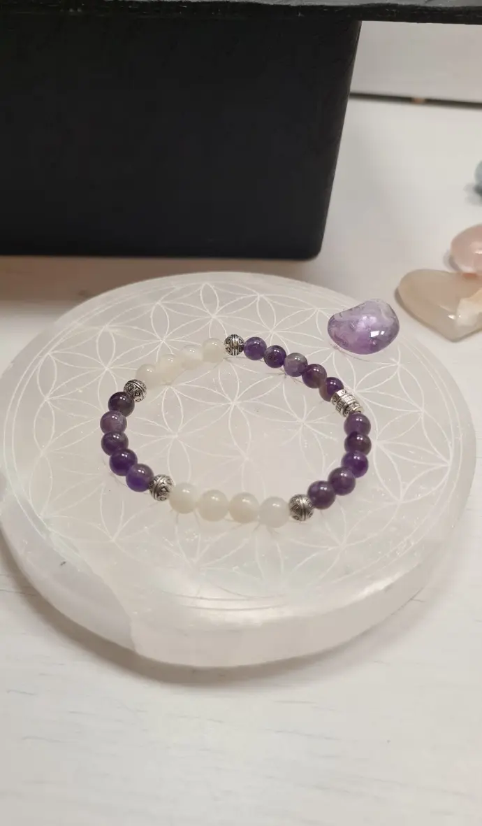 Bracelets en améthyste et pierre de lune blanche 6mm, 15cm , ajustable sur demande - 18€